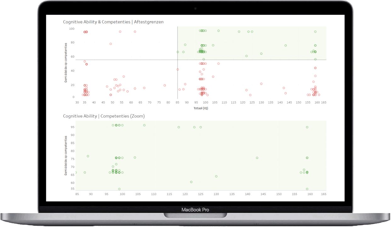 Analytics for recruitment determine what profiles not only match, but are also successful and engaged in their work. This reduces the risk of bad hires and staff turnover. Analytics for teams provide objective insight into your team's composition in relation to its tasks and goals. This helps you achieve the optimal team composition through recruitment and the further development of existing team members. Data from assessments can immediately be used for performance management, boosting engagement and targeted competence development.